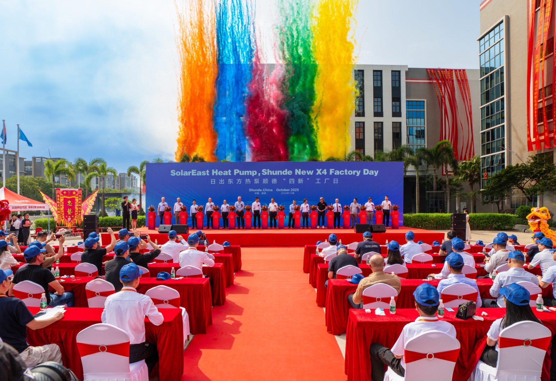 当绿色能源浪潮席卷全球,热泵作为高效清洁的能源装备,正成为推动“双碳”目标、链接国际合作的关键纽带。10月16日,日出东方热泵顺德“四新”工厂日活动盛大举行,顺德高新区管委会主任金辉、副主任吴俊锋,顺德区贸促会会长韩治帮,澳洲、荷兰、俄罗斯、葡萄牙等多国客户及供应商代表,与日出东方董事长徐新建及公司高管团队、员工代表齐聚顺德基地,共同见证这座集“新厂房、新产线、新实验室、新产品”于一体的现代化工厂正式启用。